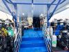An Bord erwarten dich komfortable Kabinen mit Klimaanlage, eine großzügige Tauchplattform, moderne Sicherheitsausstattung, Nitrox-Anlage, ein gemütlicher Salon sowie eine hervorragende Küche. Die maximale Gästeanzahl beträgt 24 Personen – getaucht wird in kleinen Gruppen mit maximal 6 Tauchern pro Guide.
